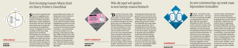 Elke week recenseer ik voor nrc.next de laatste games voor Android, iOS en Windows Phone. Deze week: Spin-circle, Don’t Screw Up en Solar Jet Man-kloon Cavernaut.