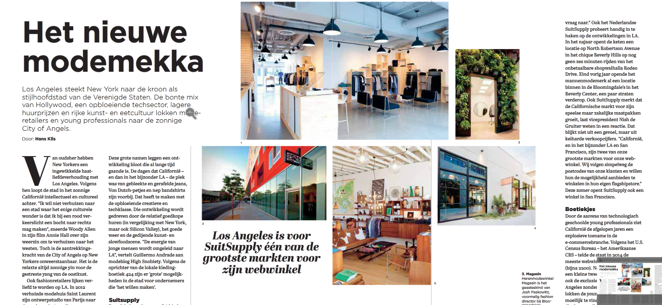 Los Angeles steekt New York naar de kroon als stijlhoofdstad van de Verenigde Staten. De bonte mix van Hollywood, een opbloeiende techsector, lagere huurprijzen en rijke kunst- en eetcultuur lokken moderetailers en young professionals naar de zonnige City of Angels. Ik schreef erover in tijdschrift RetailTrends.