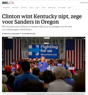 Hillary Clinton komt maar niet van Bernie Sanders af. Vannacht won zij nipt in Kentucky maar verloor Oregon aan de senator uit Vermont. Ik versloeg de race voor nrc.nl.