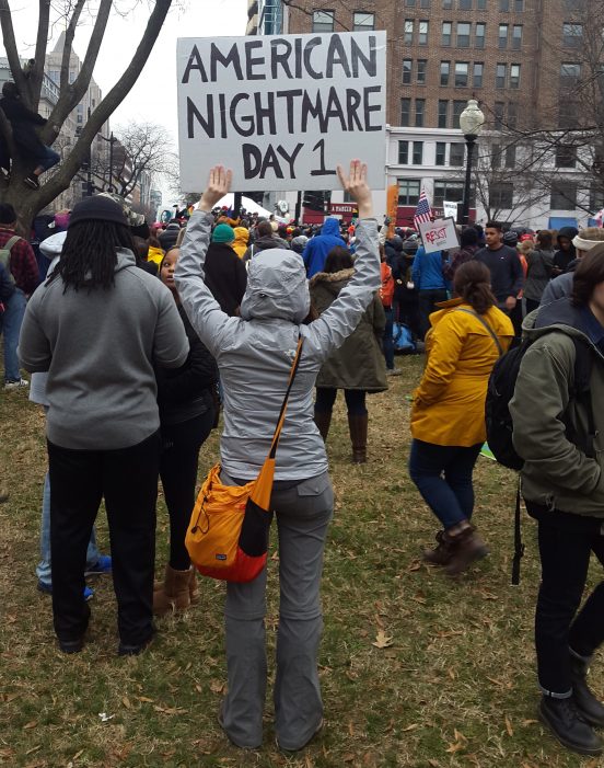 Protest tegen Donald Trump op McPherson Square in Washington, 20 januari 2017. Foto Hans Klis.
